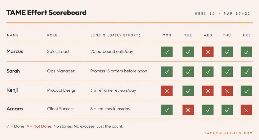 It requires clear effort definitions, daily visibility, and execution habits that run without emotional pressure.